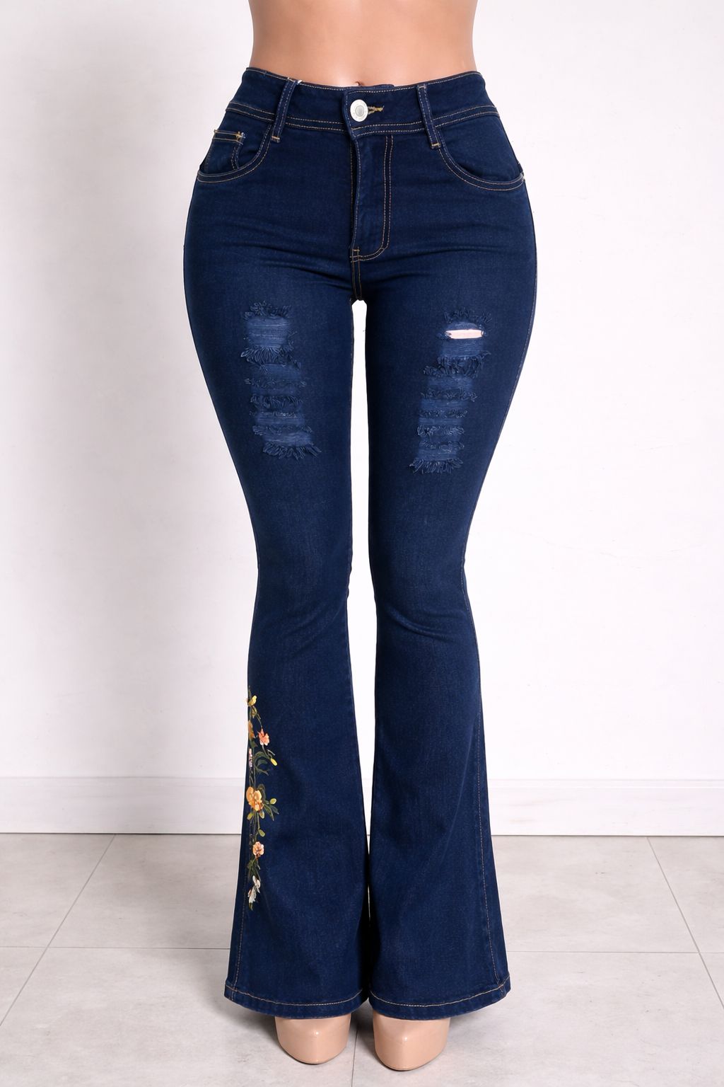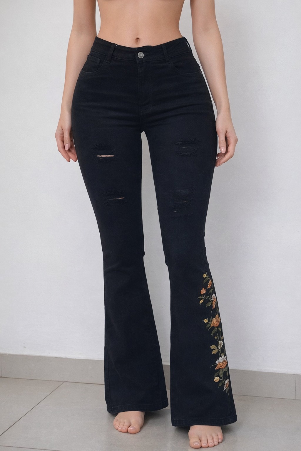 Resalta tu figura con nuestro jean stretch acampanado de tiro alto, diseñado para brindarte comodidad y estilo en todo momento. Su ajuste favorecedor y tela flexible se adapta perfectamente a tu cuerpo.
